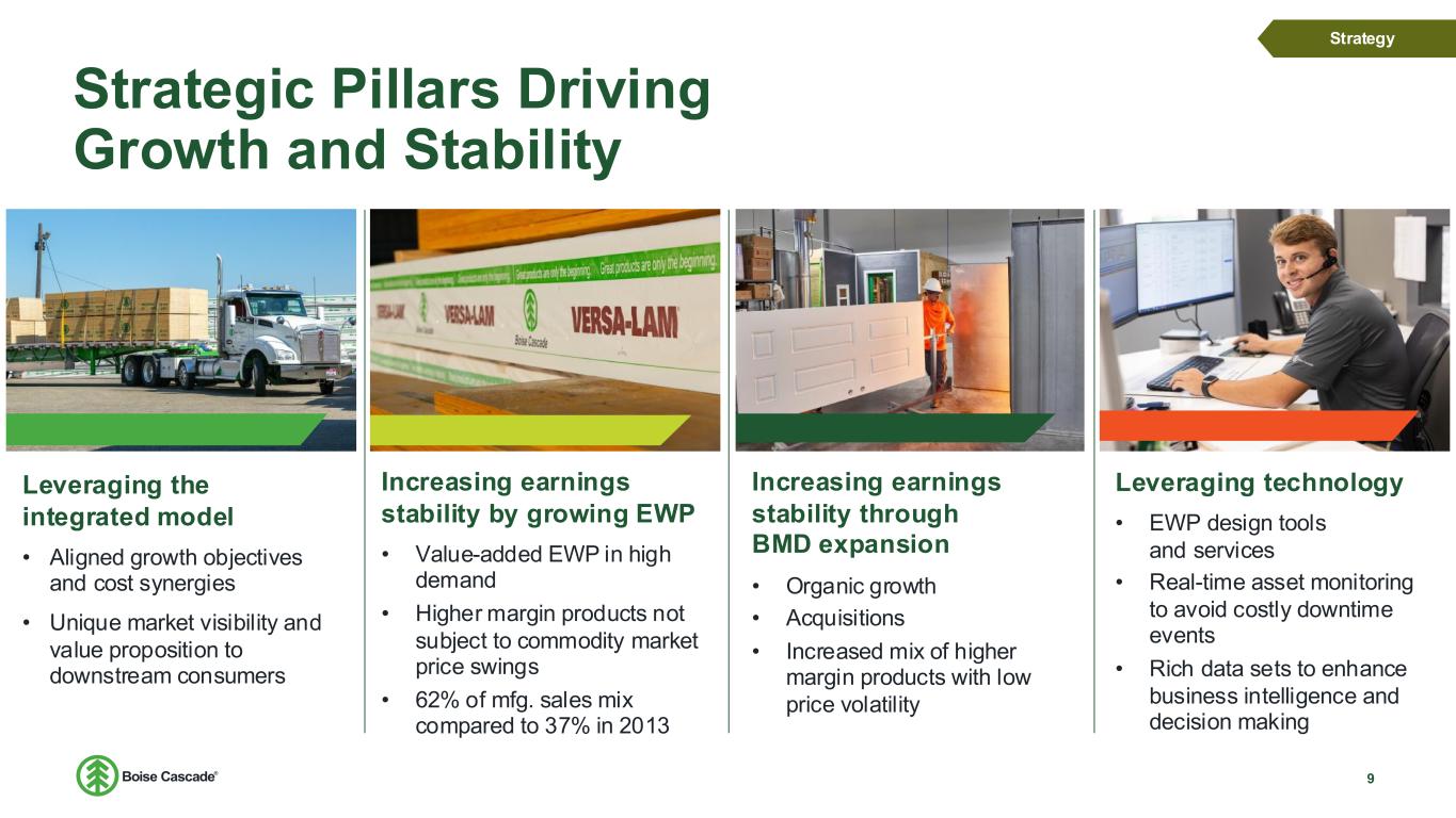 Focused Strategy has Created a Strong, Highly Aligned Business 8 LTM $6.6 B revenue Acquisition of assets in Chester, SC to expand veneer capabilities in Southeast US IPO 2013 2016 BMD acquisitions: Nashville | Cincinnati Birmingham | Medford Coastal Plywood acquisition to achieve veneer self-sufficiency and increase capacity in the Southeast US 2022 Pandemic supply chain disruptions/ significant commodity price volatility 2020- 2021 Accelerated door and millwork growth through acquisitions of BROSCO, Caldera, and Parksite along with greenfield operations in Denver and Kansas City 2018- 2019 Intro & Overview Higher margin product mix Greater earnings stability Greater self- sufficiency of inputs Increased scale Acquisition of EWP assets in Thorsby, AL increased LVL production capacity Sale of non-core assets: NE Oregon: lumber & particleboard North Carolina: non- integrated hardwood plywood operations 2012 $2.8 B revenue 2023- 2024 2021- 2022 Door & millwork start-ups in Dallas & Houston LTM –Twelve months ending 6/30/2025